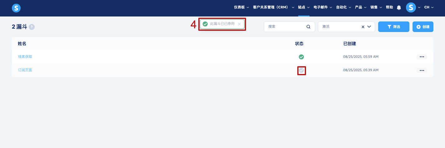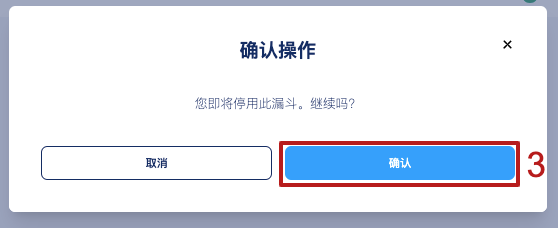 在弹出的窗口中,点击 ”确认“ 停用漏斗(3)