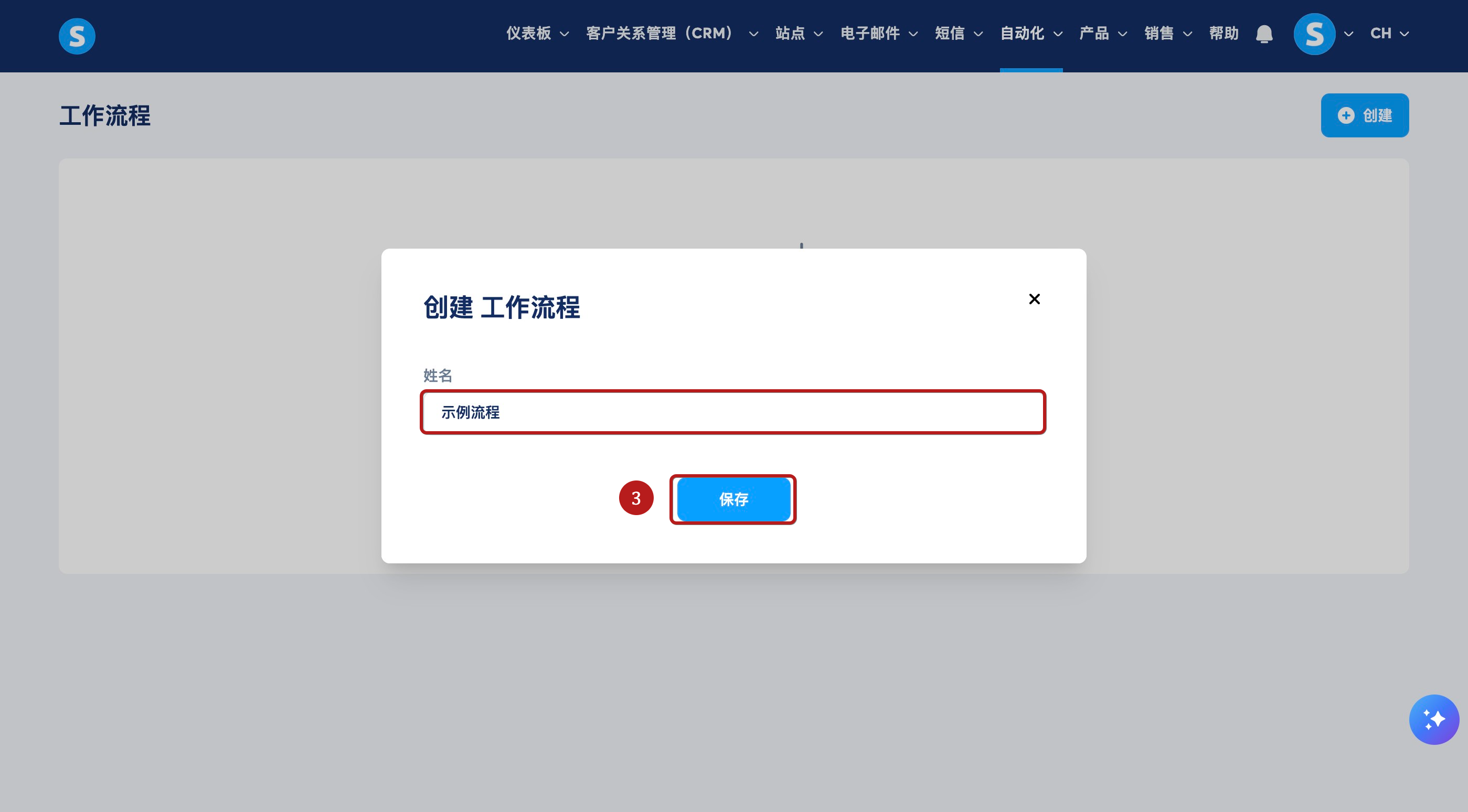 为您的工作流程选择一个名称然后点击保存(3)