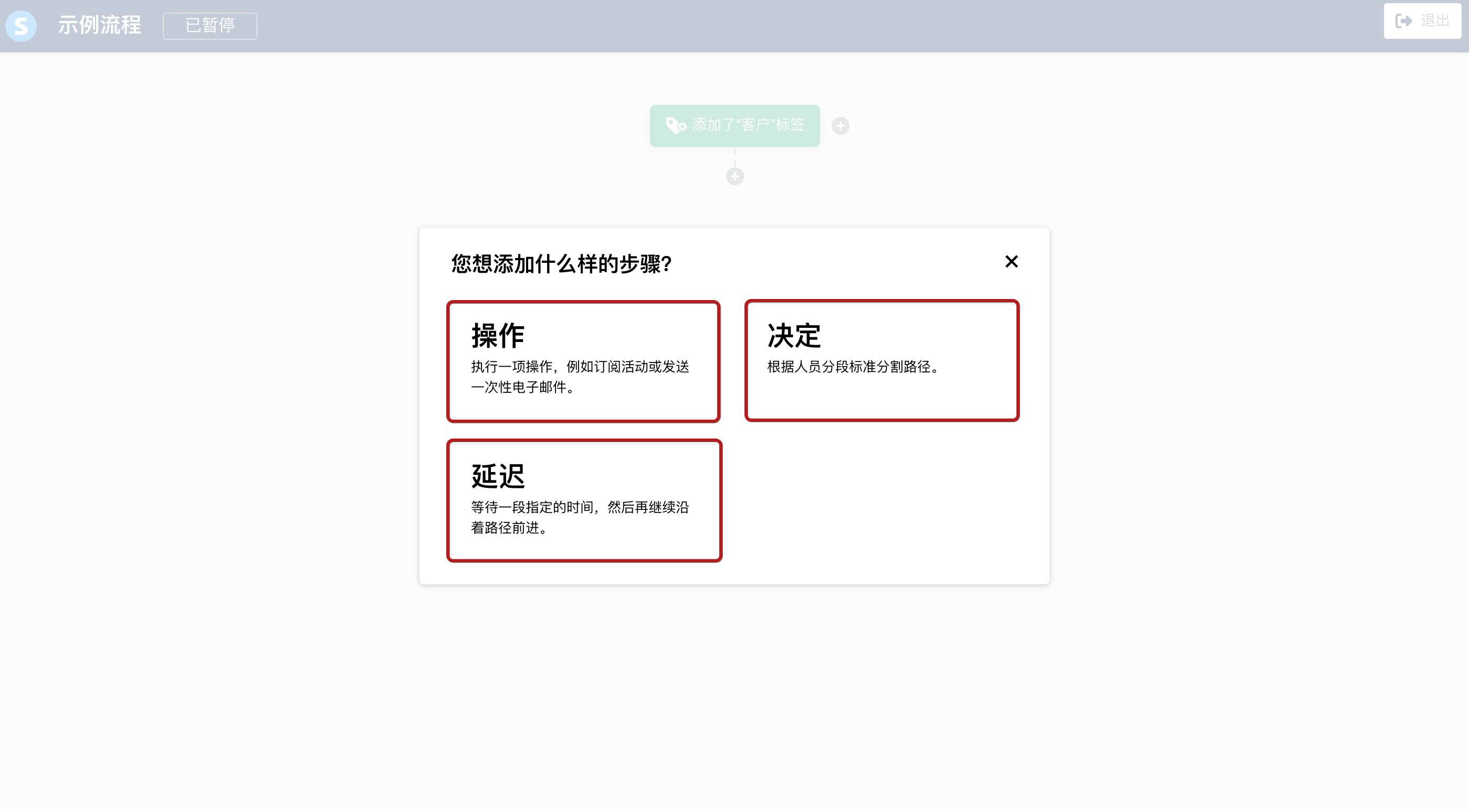 - 添加标签/删除标签: 工作流程激活后,联系人的特定标签被添加或移除时发生(工作流程激活前已添加/移除的标签将不予考虑)