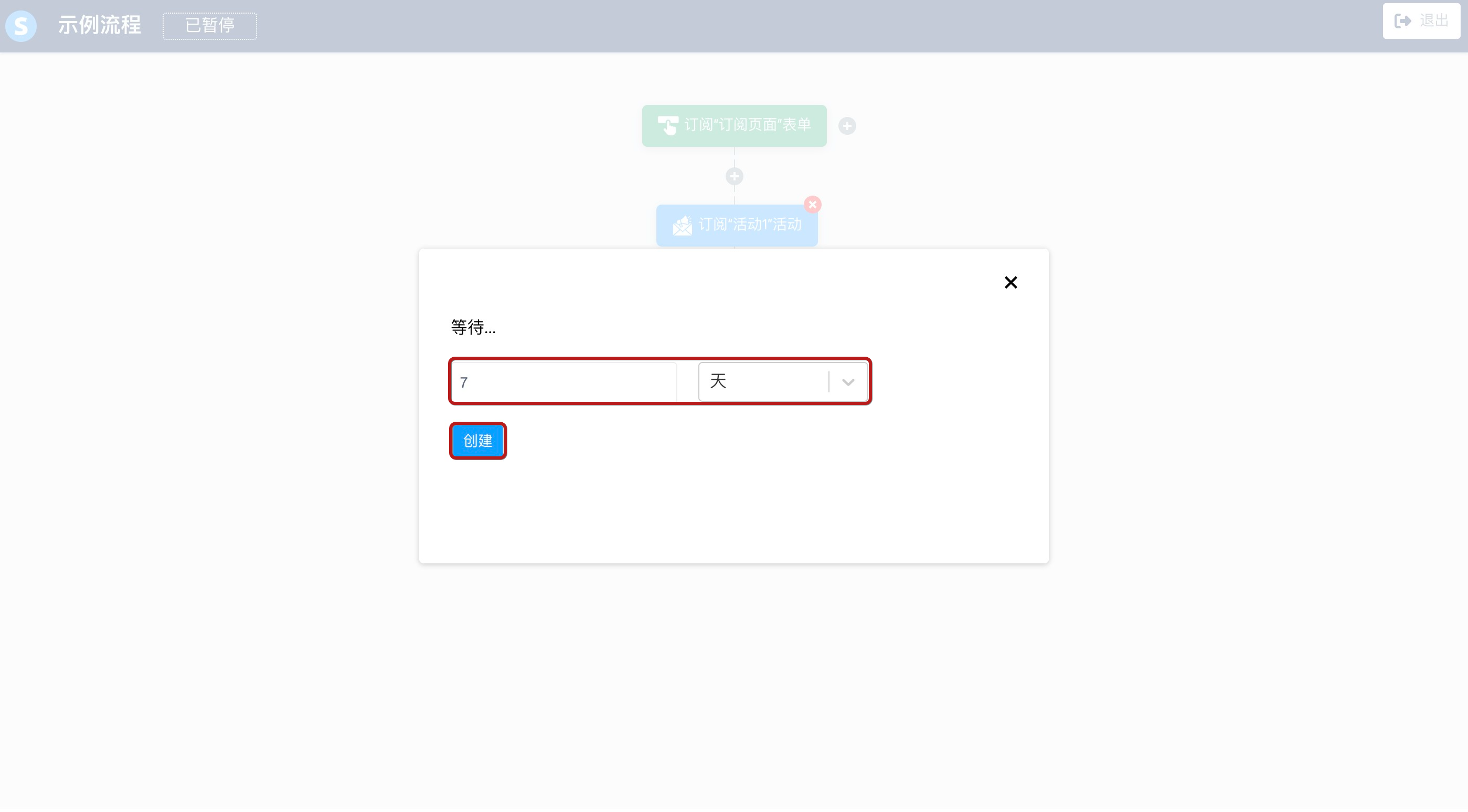- 一个延迟: 定义进入下一个工作流程步骤前的等待时间。