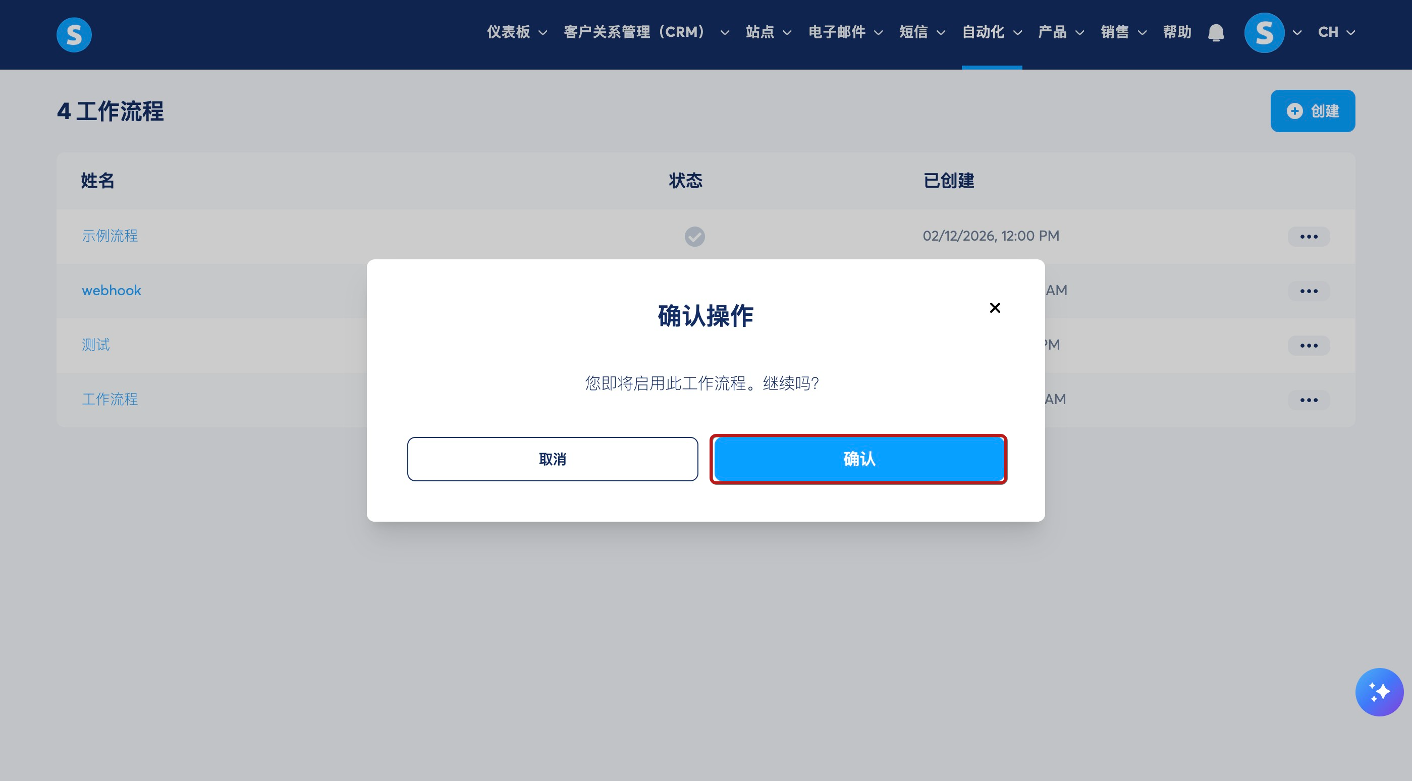 工作流程配置完成后,您需要激活它