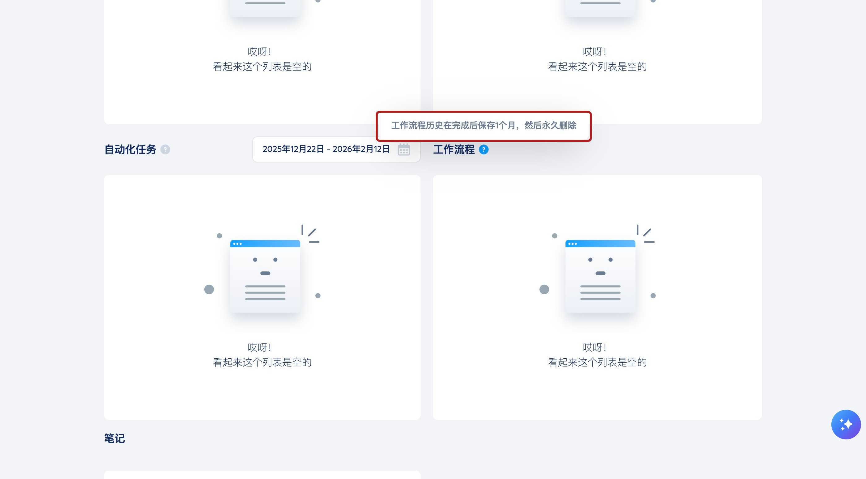 工作流程执行历史只存储一个月。在此期间后,它会自动从系统中移除以进行数据优化。