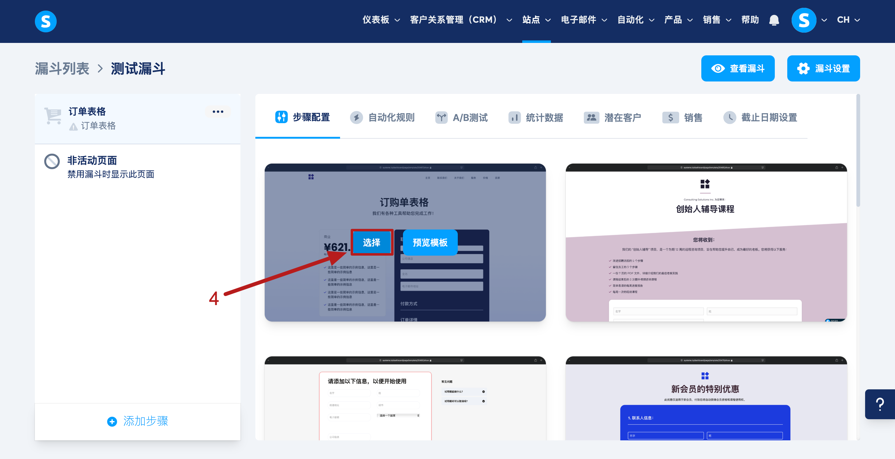 浏览模板库,点击您想用于订单页面的模板上的“选择”按钮(4)