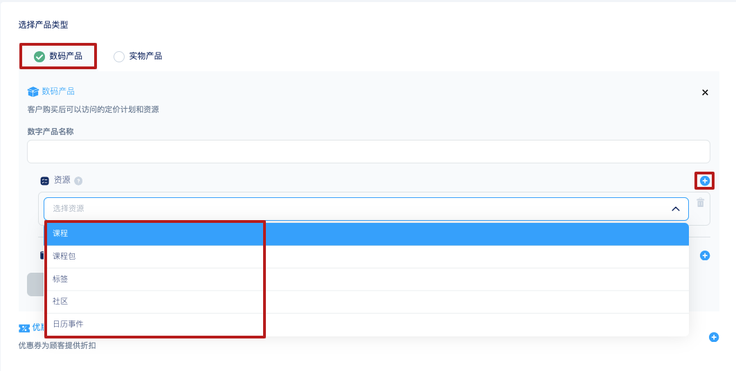 选择产品类型后,您需要指定客户在购买后可以访问哪些资源。