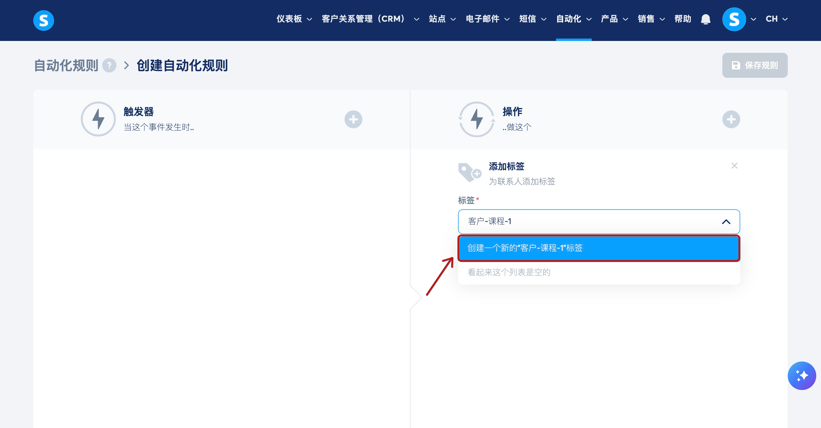 请注意,也可以直接从自动化规则中创建新标签。只需在自动化规则中输入要创建和使用的标签名称,标签就会自动创建。