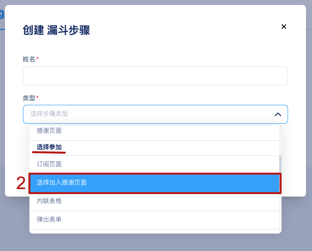 在漏斗的“选择参加”部分选择“选择加入感谢页面”,这是注册页面之后可显示的感谢页面(2)