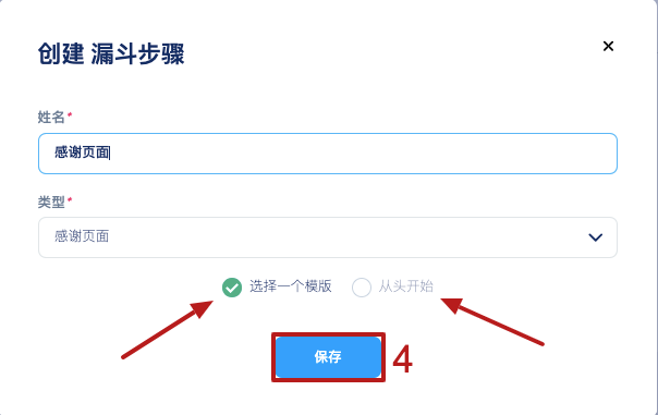 您可以选择模板或从头创建页面;然后点击“保存”按钮创建页面(4)