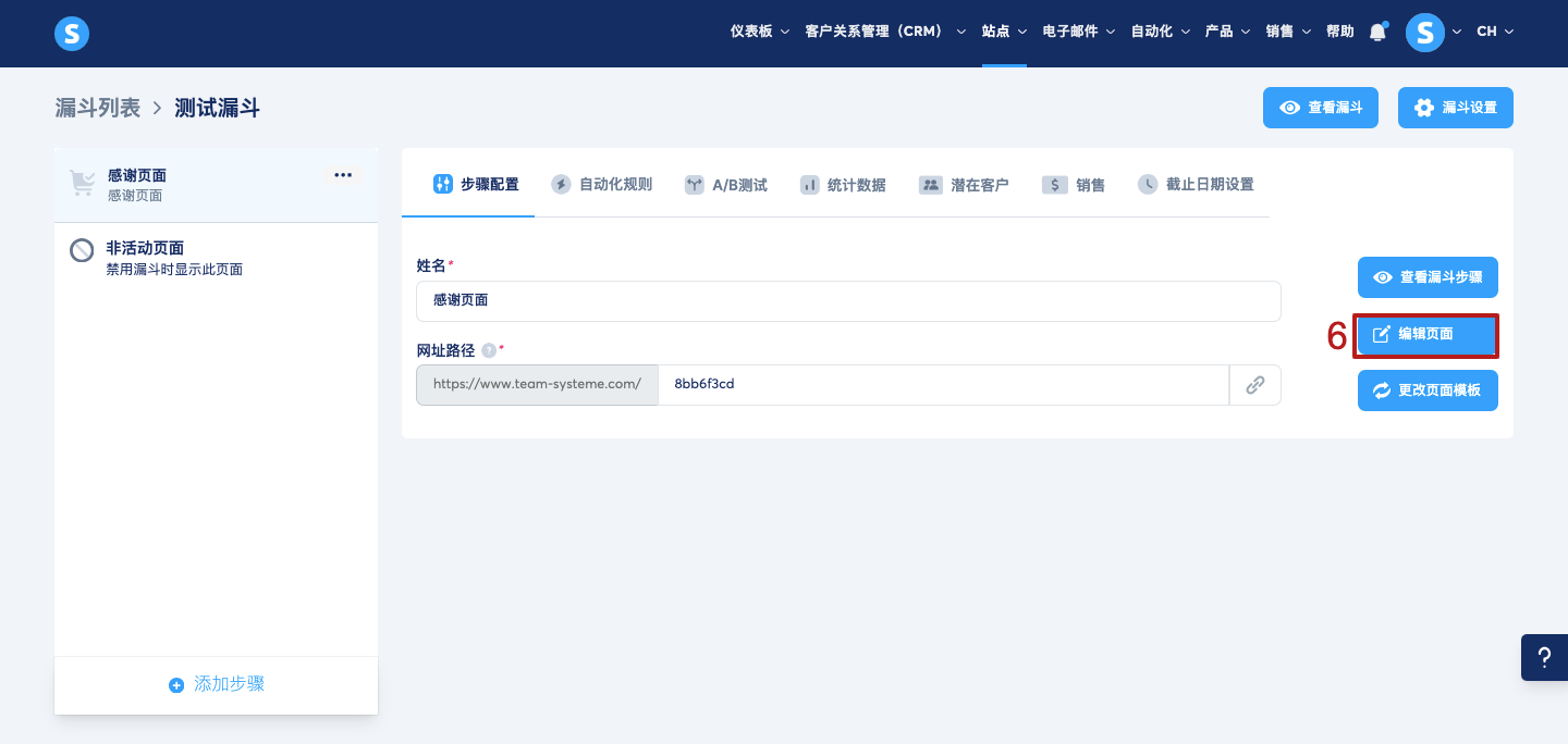 最后,点击“编辑页面”进入页面编辑器,配置您的感谢页面(6)