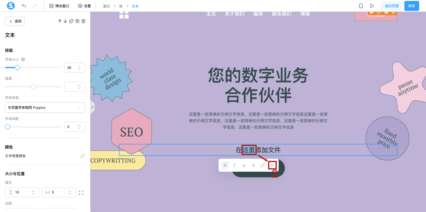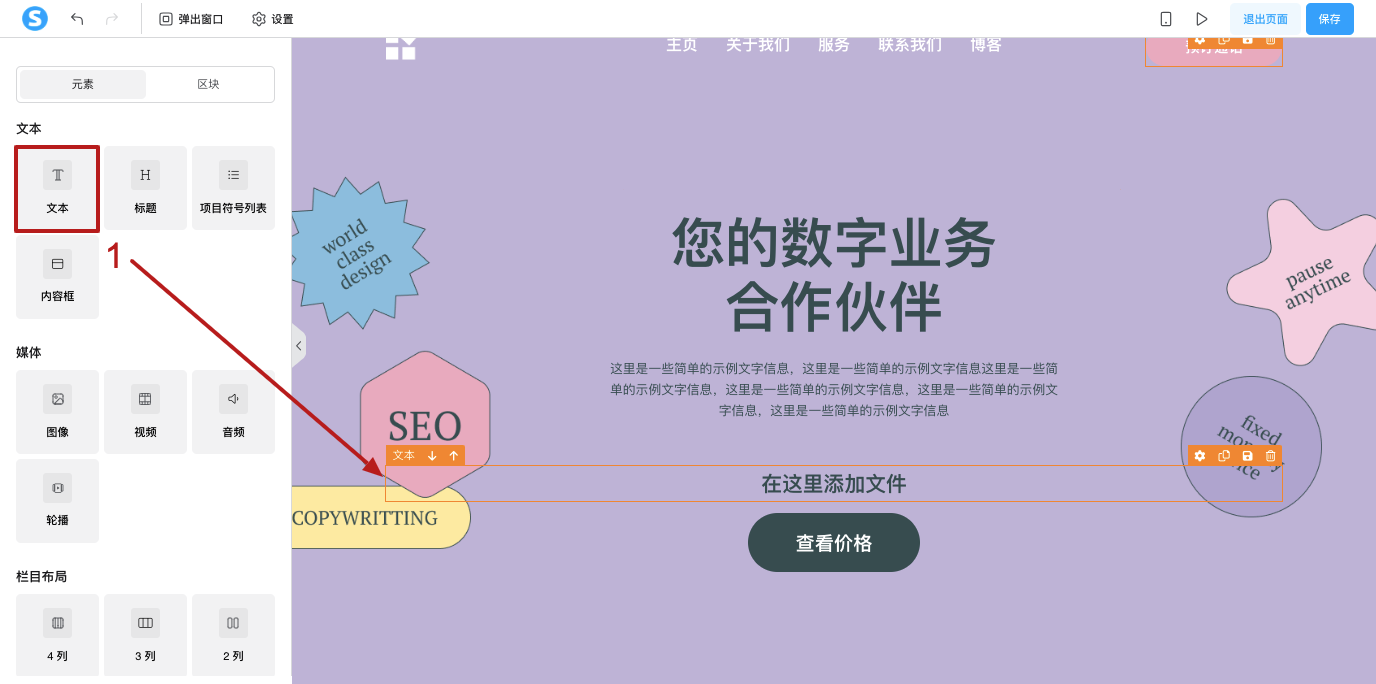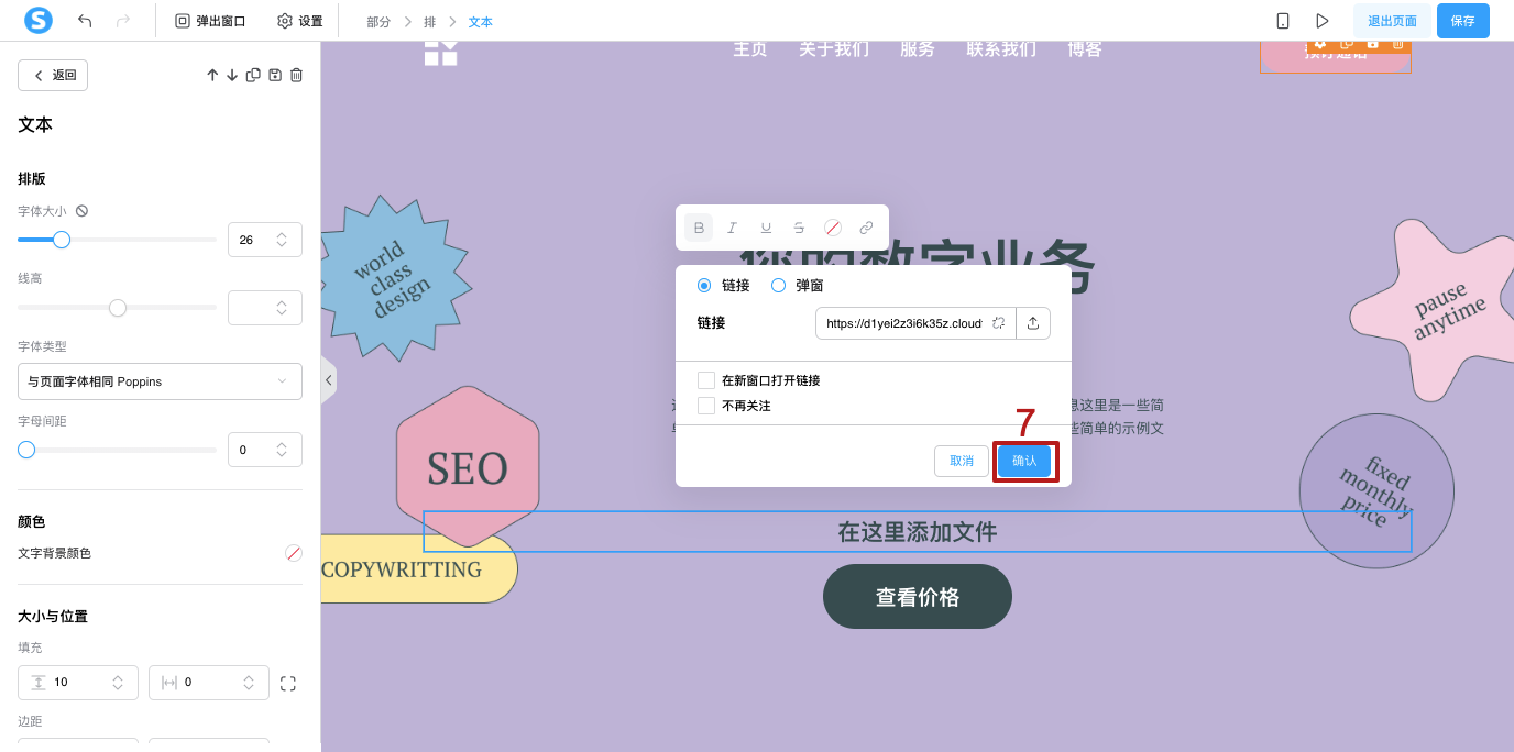 点击保存按钮(8)保存页面,然后点击预览按钮(9)。