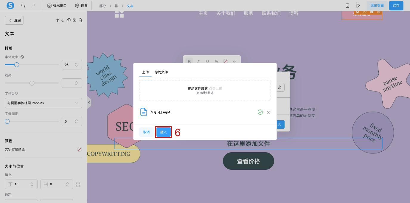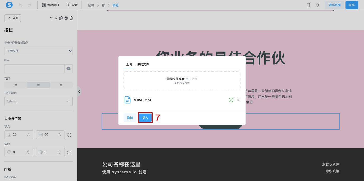或者,您也可以选择已存储在您的systeme.io账户中的文件(6)。