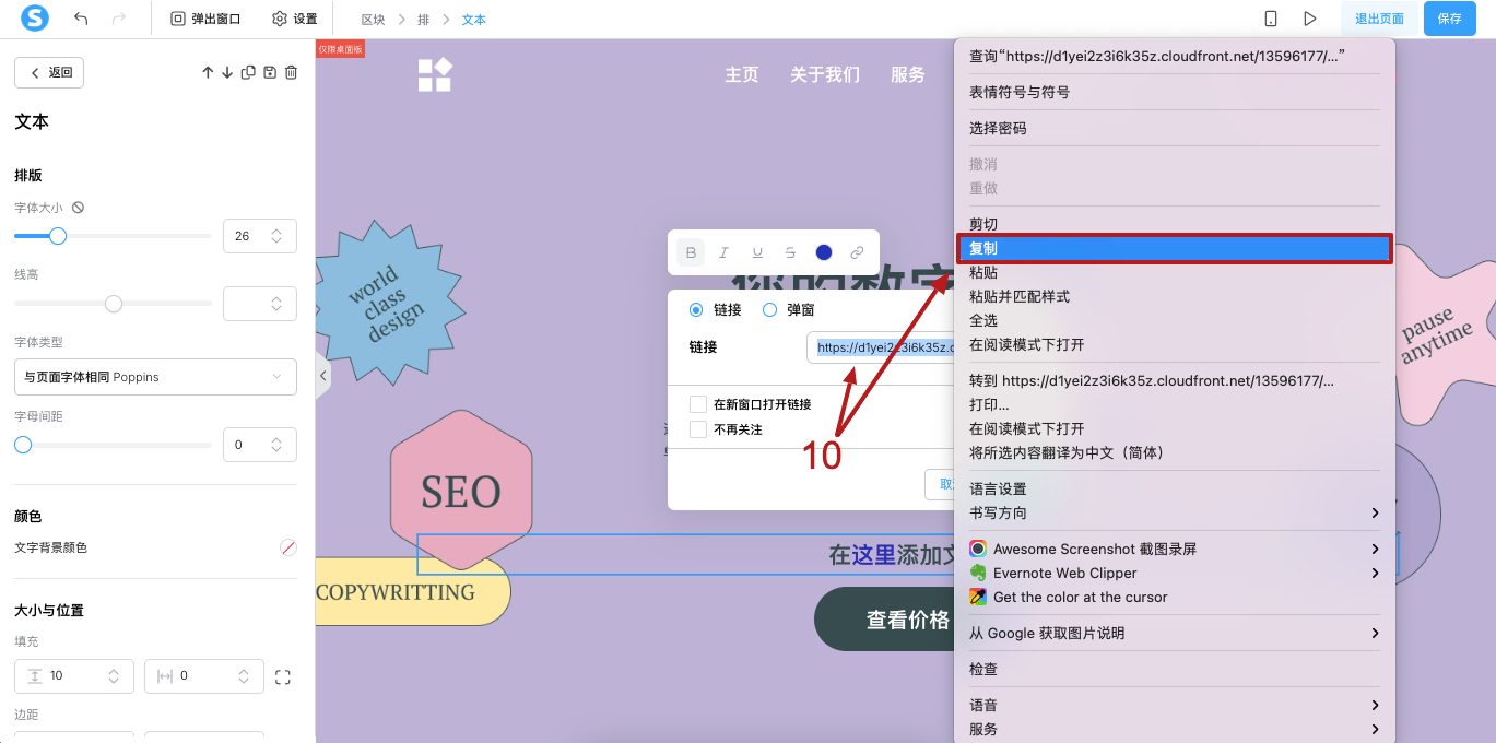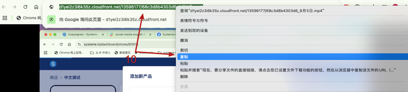 您也可以通过复制systeme.io生成的URL来分享此文件的直接链接。只需点击可点击的文本,然后右键点击复制即可(10)。