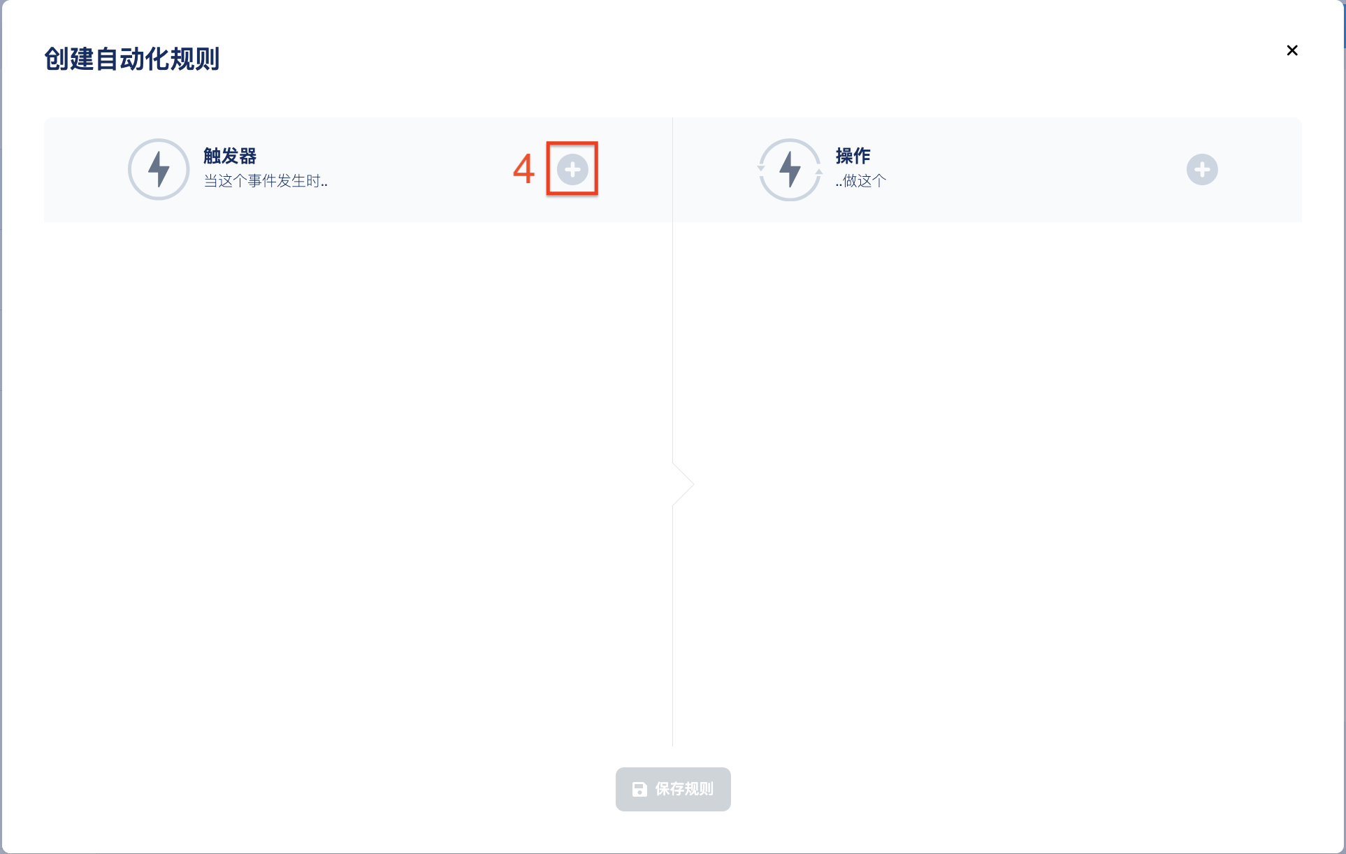 点击 “+” 图标以添加触发器。(图中数字 4 )
