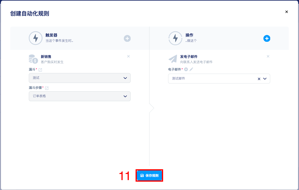 保存电子邮件后,通过单击 “保存规则”(图片中的数字 11)来保存规则。