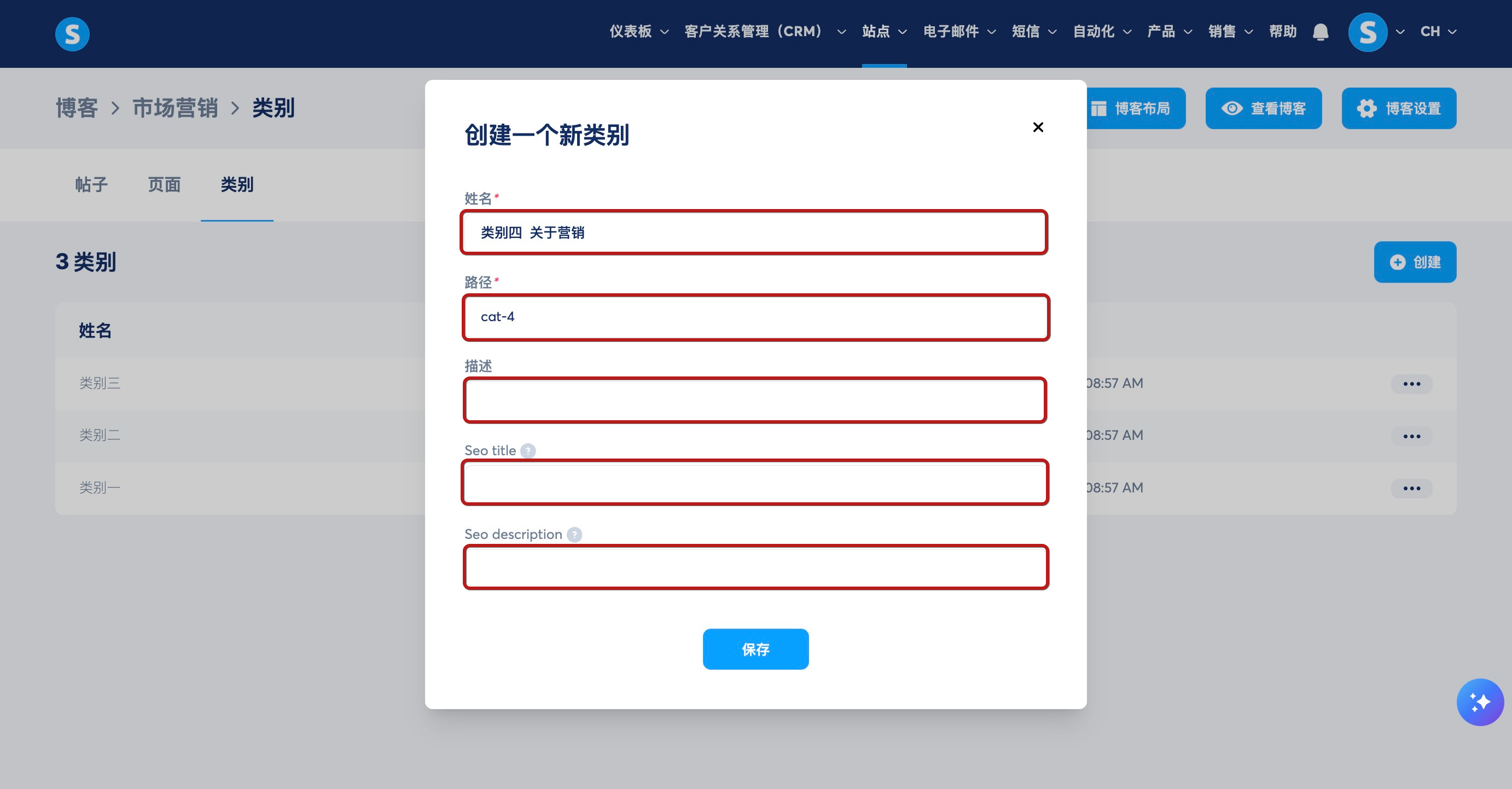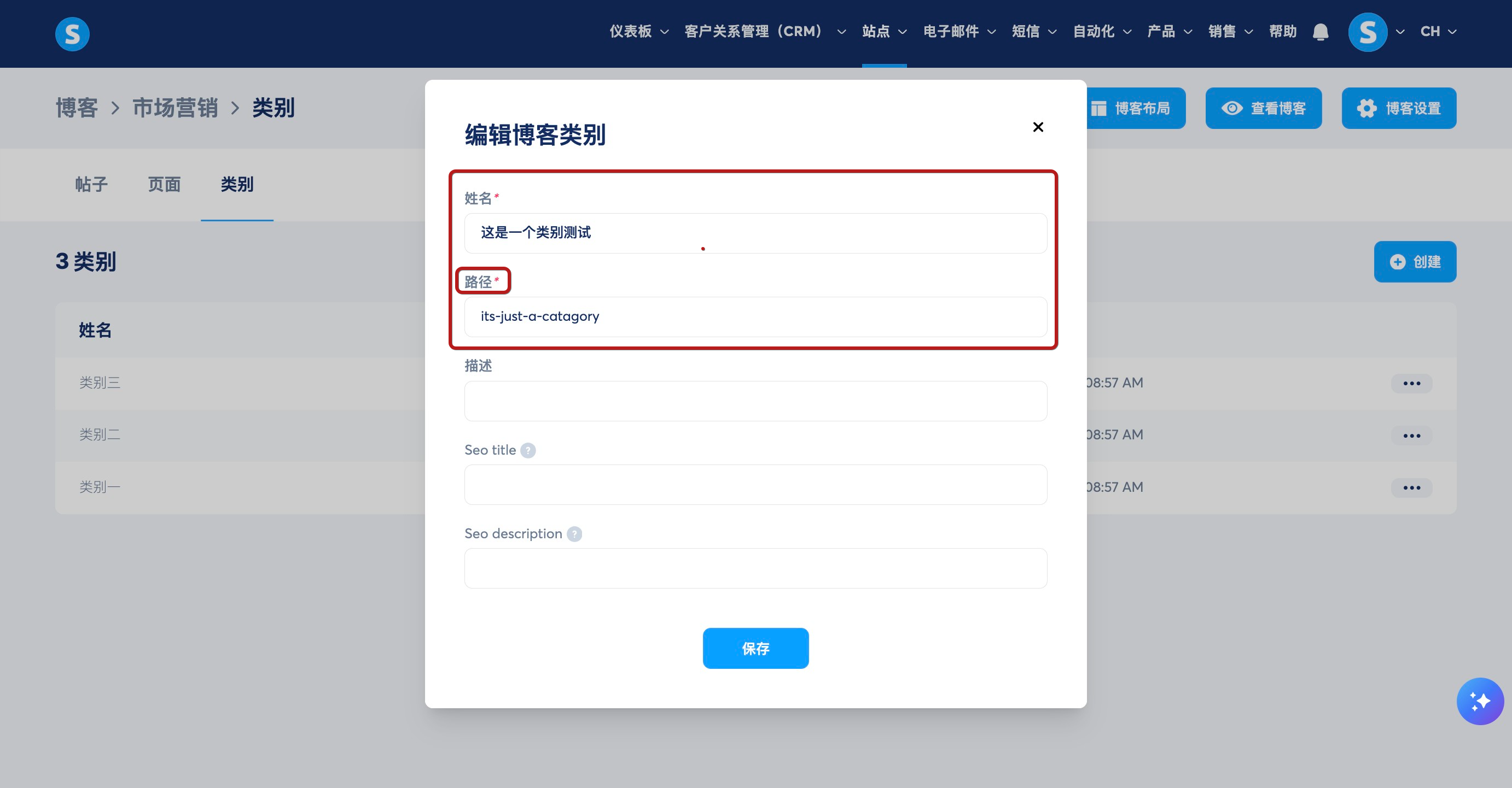 2. 路径: 路径将自动填入输入的类别名称,每个词之间用“-”分隔,您可以根据需要修改路径,因为并不强制要求使用与类别名称相同的路径。