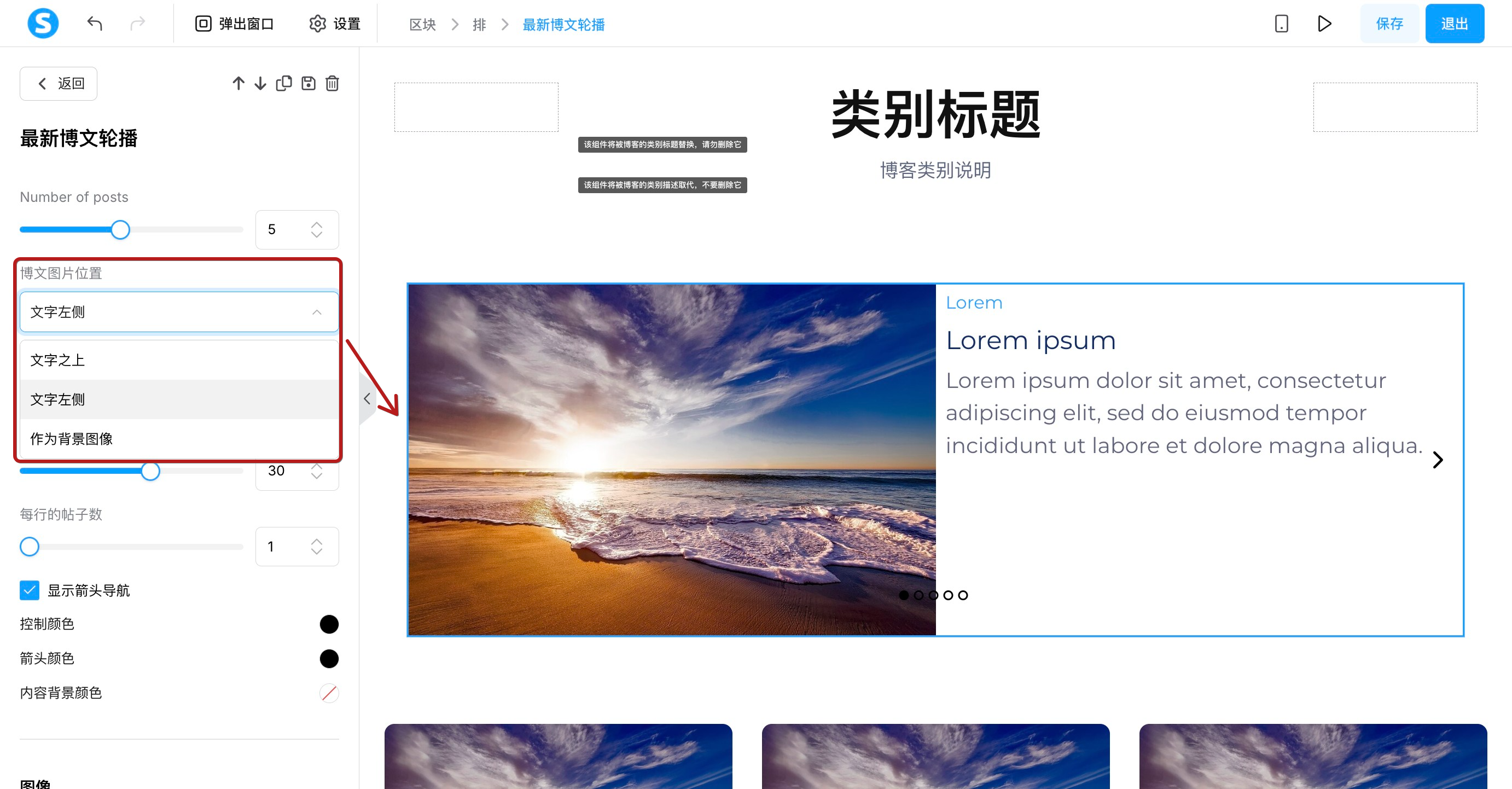 - 博文图片位置:您可以在文本上方、文本左侧或作为背景图片之间进行选择