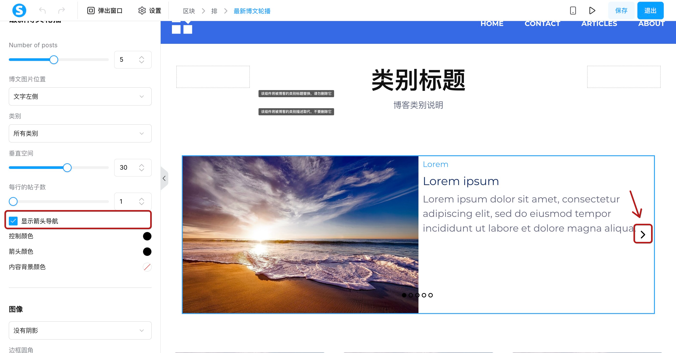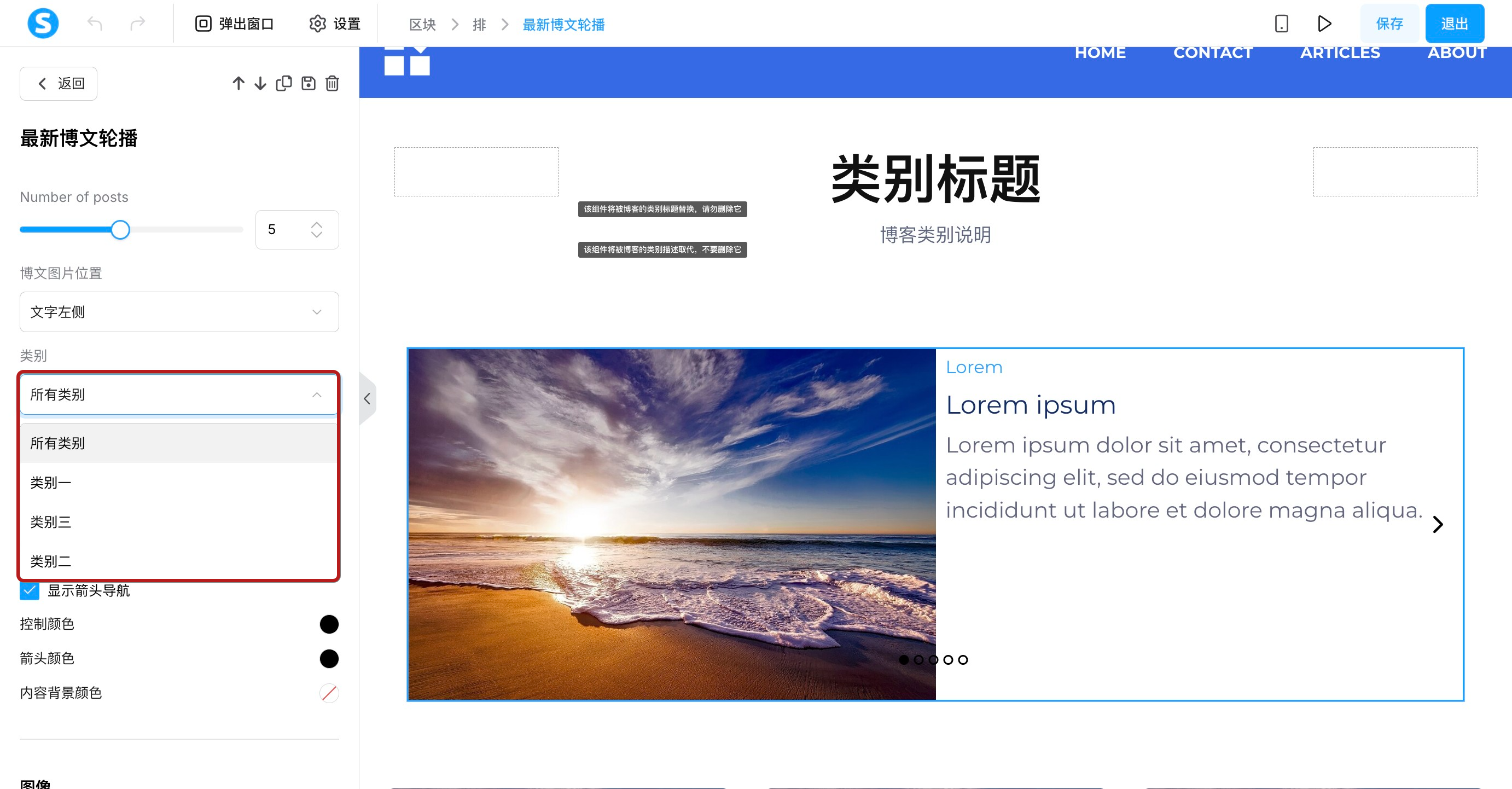 - 类别:如果您只想在轮播上显示特定类别的文章