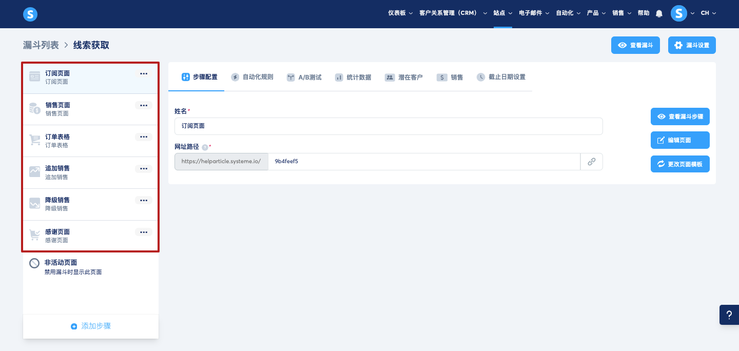注意:销售漏斗页面必须按照以下顺序工作(如下图)