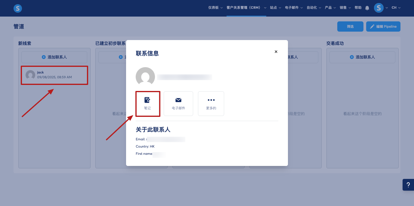 您还可以在管道联系人的个人资料中添加笔记,这可以帮助您记录管道中每个联系人的重要信息。这包括必要的详细信息、想法或通话摘要,将所有信息集中在一个地方以实现最佳组织。