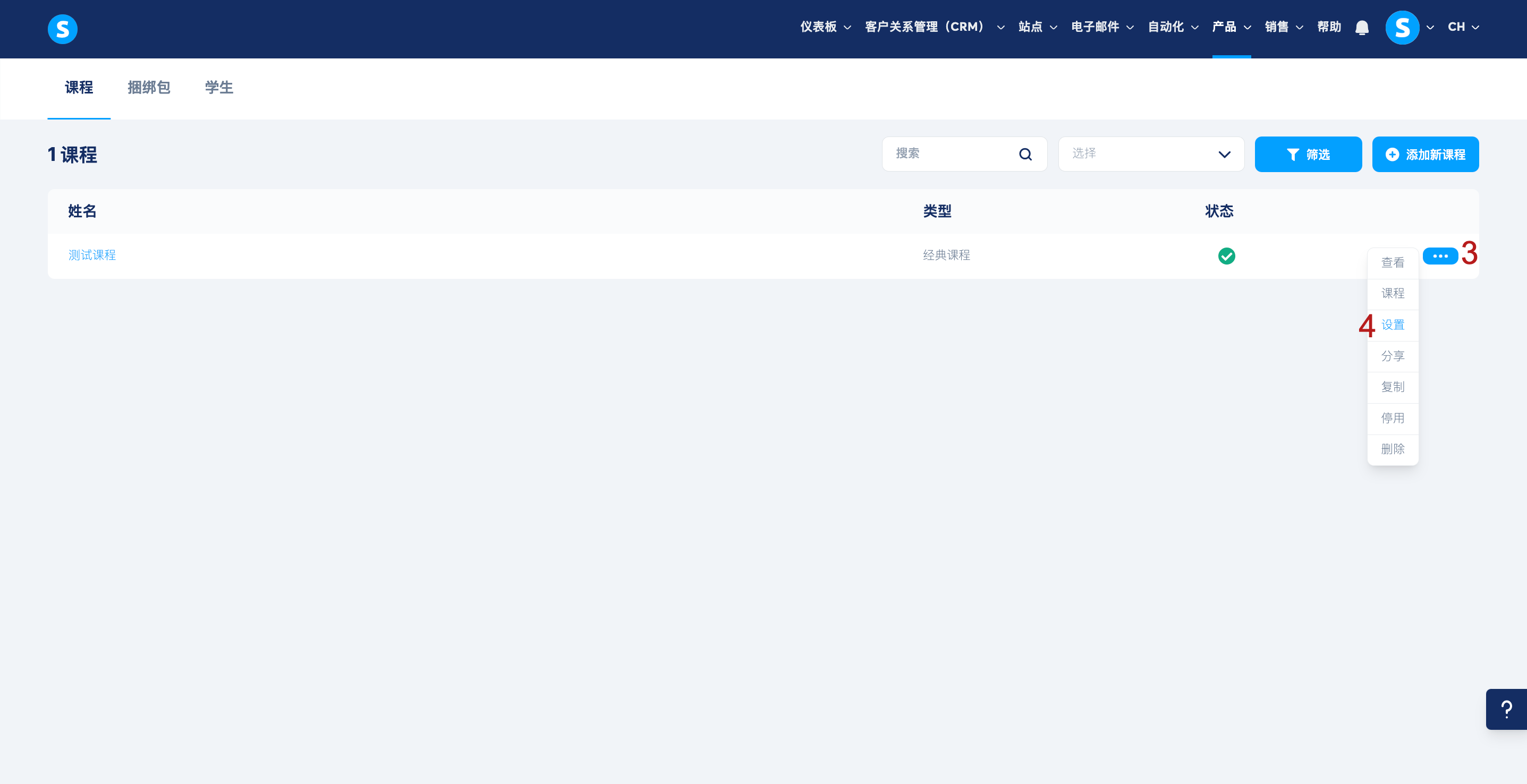 在课程列表中,点击目标课程旁边的三个点菜单(3),然后选择设置(4)。