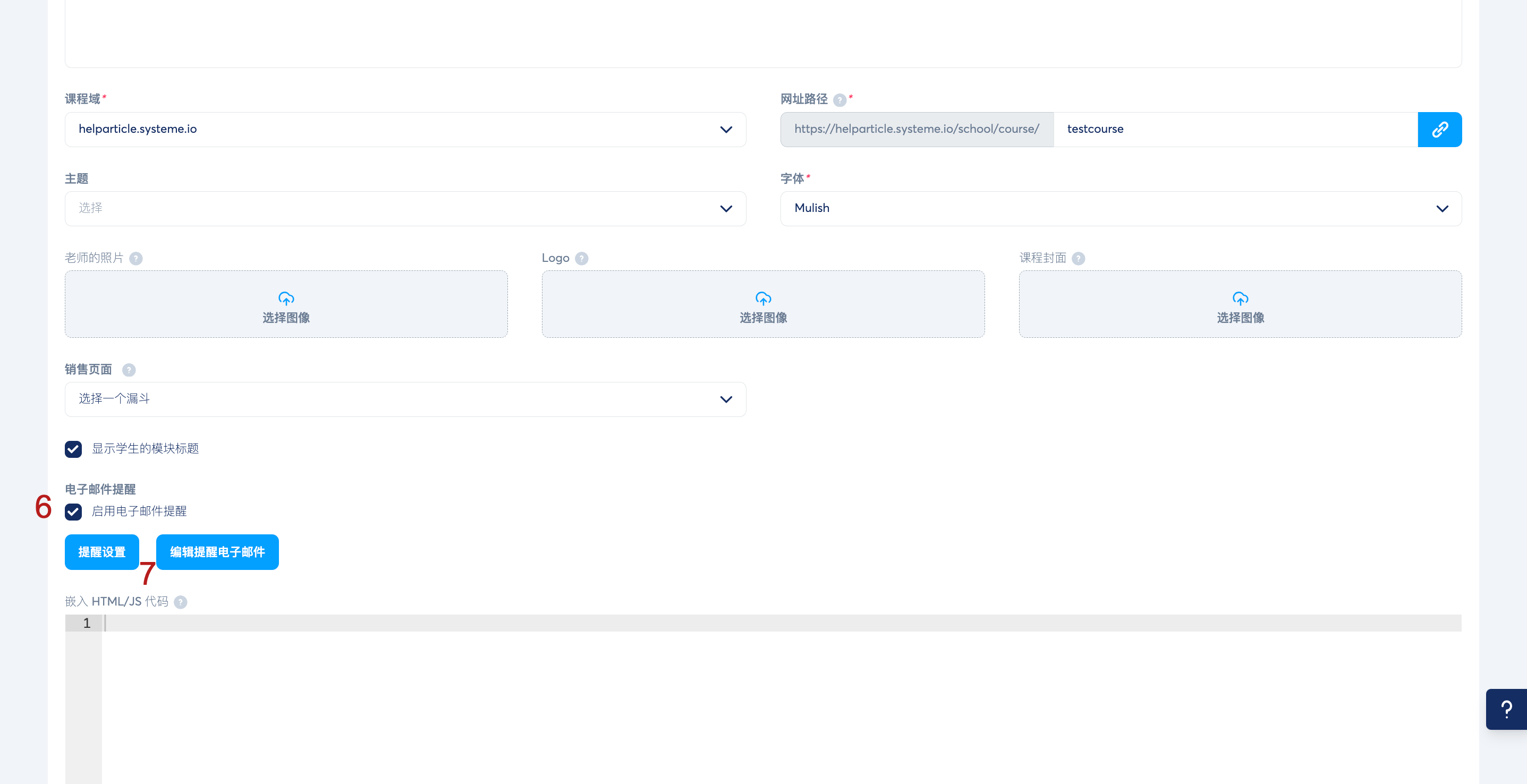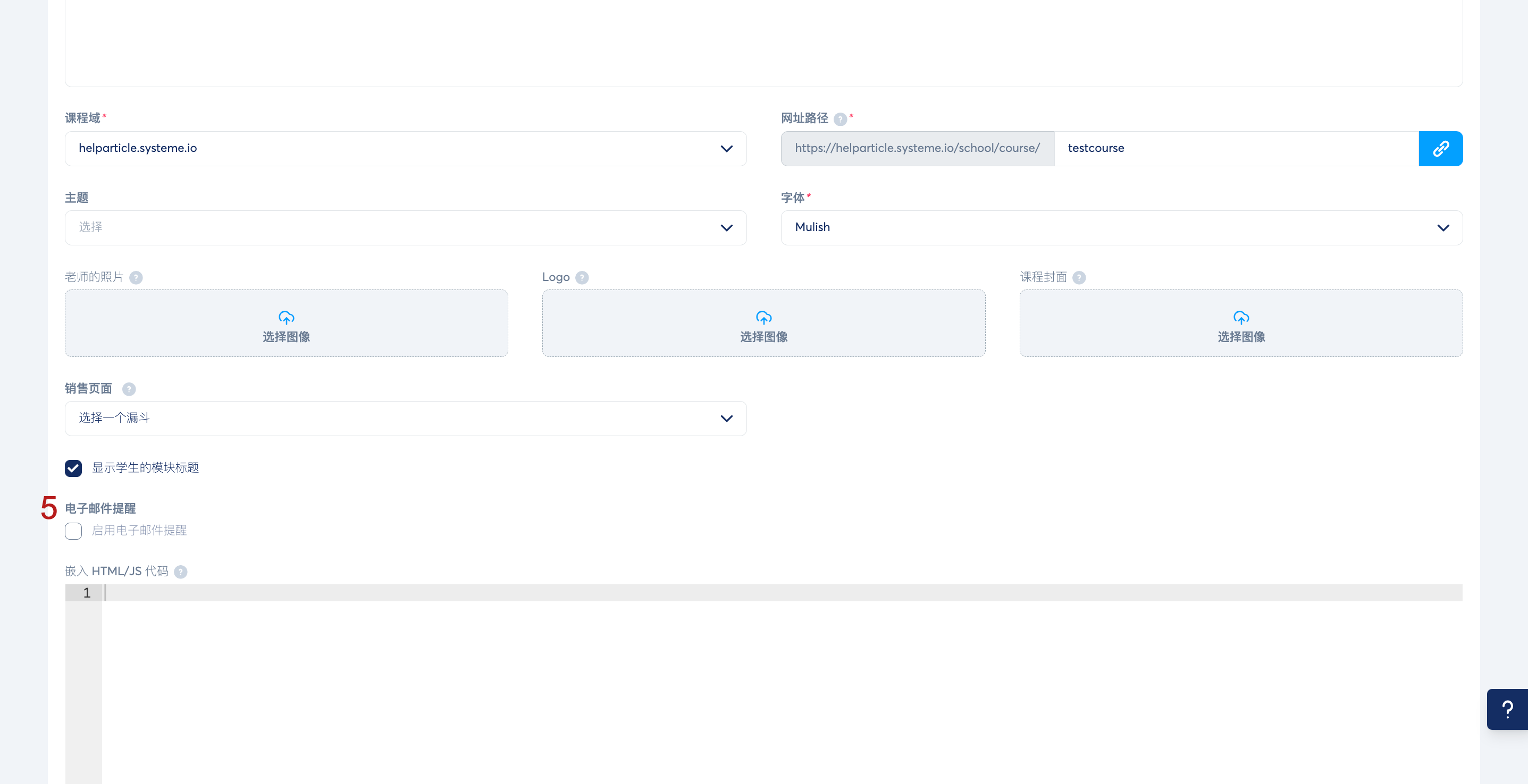 您将被重定向至课程设置选项卡。向下滚动找到电子邮件提醒部分(5)。
