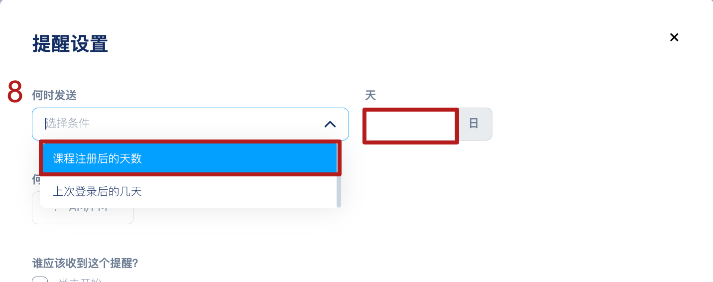 请输入满足所选条件后需要经过多少天来触发提醒。